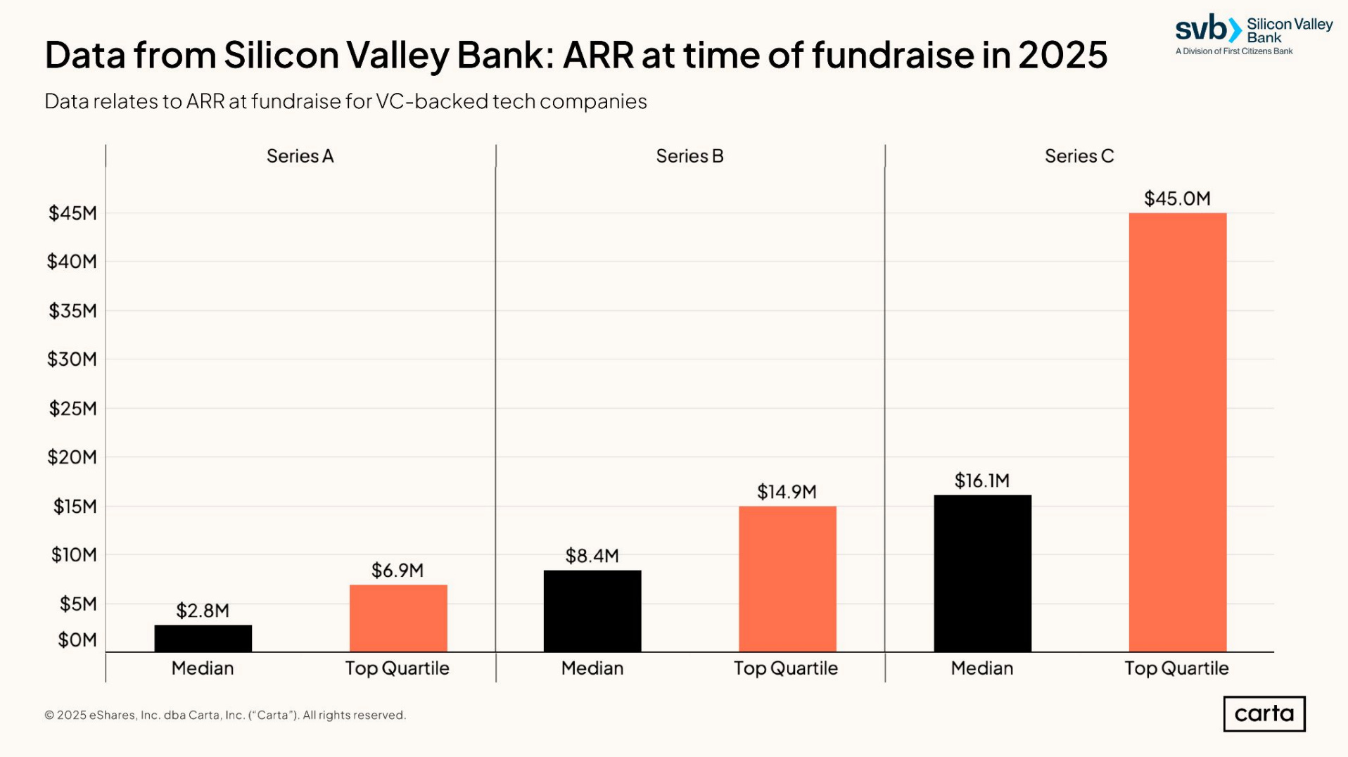 “ARR at the time of fundraise in 2025” - New SVB/Carta data (h/t Peter Walker) on ARR at fundraise in 2025. To translate this to marketplace terms, here is the implied GMV for the $2.8M median Series A ARR:
